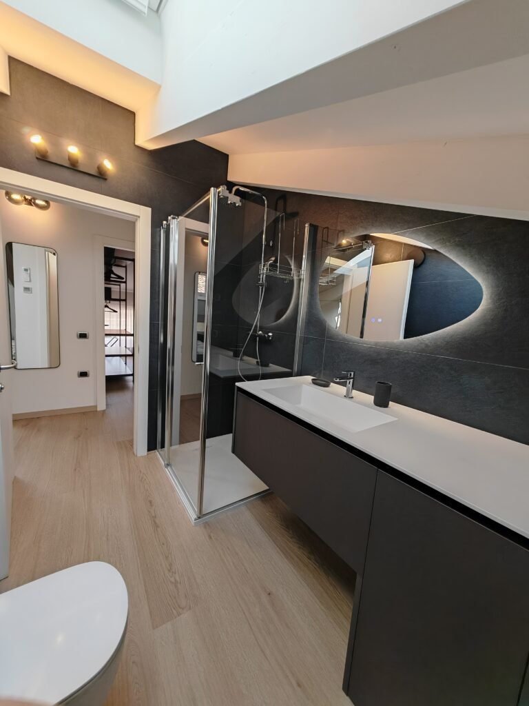 Tutto l’appartamento è stato completamente ristrutturato con cura, con materiali ed attrezzature di ultima generazione, inondato dalla luce naturale che entra dalle nuove Velux motorizzate.